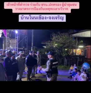 เมื่อวันที่ (28ต.ค. 2567) เวลา 20.00 – 01.00 น. พ.ต.ท.ธนายุทธ สาระใต้ รองผกก.ป.(ผู้ควบคุม) ร.ต.อ.พูลสวัสดดิ์ ศรีลาศักดิ์ รอง สว(ป.)ฯ (หัวหน้าชุด) นำชุดรักษาความสงบเรียบร้อยและวางมาตรการในการรักษาความสงบเรียบร้อยงานบุญ บ้านโนนเขือง หมู่ 3 ต.นาโพธิ์ อ.บุณฑริก จ.อุบลราชธานี โดยในงานมีการจัดแสดงหมอลำมีหางเครื่องประกอบ สภ.นาโพธิ์(บุณฑริก)มีมาตรการและแนวทางป้องกันเหตุทะเลาะวิวาท ดังนี้ 1.มาตรการก่อนเริ่มงาน -ได้มีการเข้าไปพบปะกับผู้นำชุมชนเพื่อหาข้อมูลและรายละเอียดการจัดงานเพื่อวางแนวทางป้องกันเหตุ -ประชาสัมพันธ์ถึงแนวทางการรักษาความปลอดภัยของเจ้าหน้าที่และการปฏิบัติตนของผู้มาร่วมงาน 2.มาตรการขณะเริ่มงาน -มีการตั้งจุดตรวจค้นเพื่อป้องกันนำอาวุธเข้ามาในงาน -ภายในบริเวณงานจัดกำลังบริเวณจัดงานแสดงหมอลำ-จัดชุดเคลื่อนที่เร็ว (ร้อยเวร 20 สายตรวจรถยนต์ สายตรวจตำบล)ไว้คอยสนับสนุน 1 ชุดออกตรวจรอบบริเวณงาน และเส้นทาง 3.มาตรการหลังเลิกงาน -หลังเลิกงานจัดกำลังตำรวจส่งประชาชนผู้มาร่วมงานมหรสพกลับบ้าน โดยใช้รถโล่ห์ 3 คัน เปิดสัญญาณไฟวับวาบ เพื่อป้องกันไม่ให้วัยรุ่นรวมตัวกันก่อเหตุ 4.กำลังประกอบด้วย -เจ้าหน้าที่ตำรวจรวม 8 นาย -ฝ่ายปกครอง ผู้ใหญ่บ้าน ชรบ. 20 นาย หมายเหตุ มีผู้มาร่วมงานประมาณ 300 คนเหตุการณ์ทั่วไปปกติ